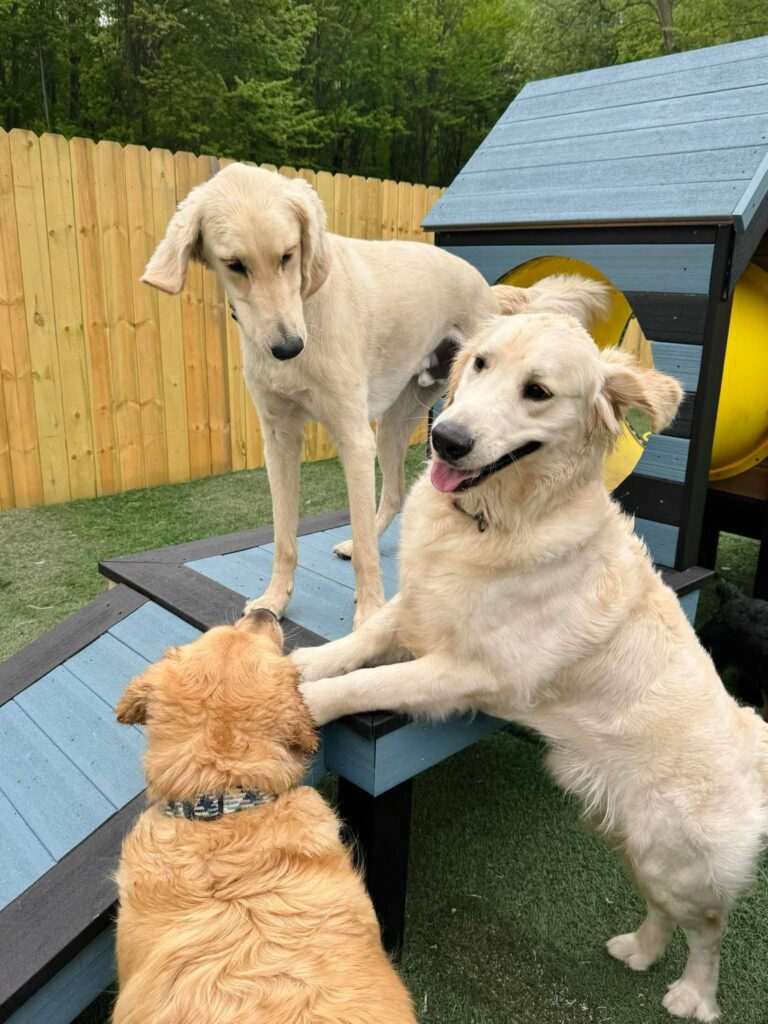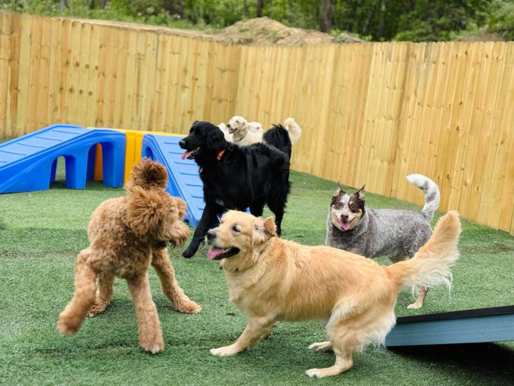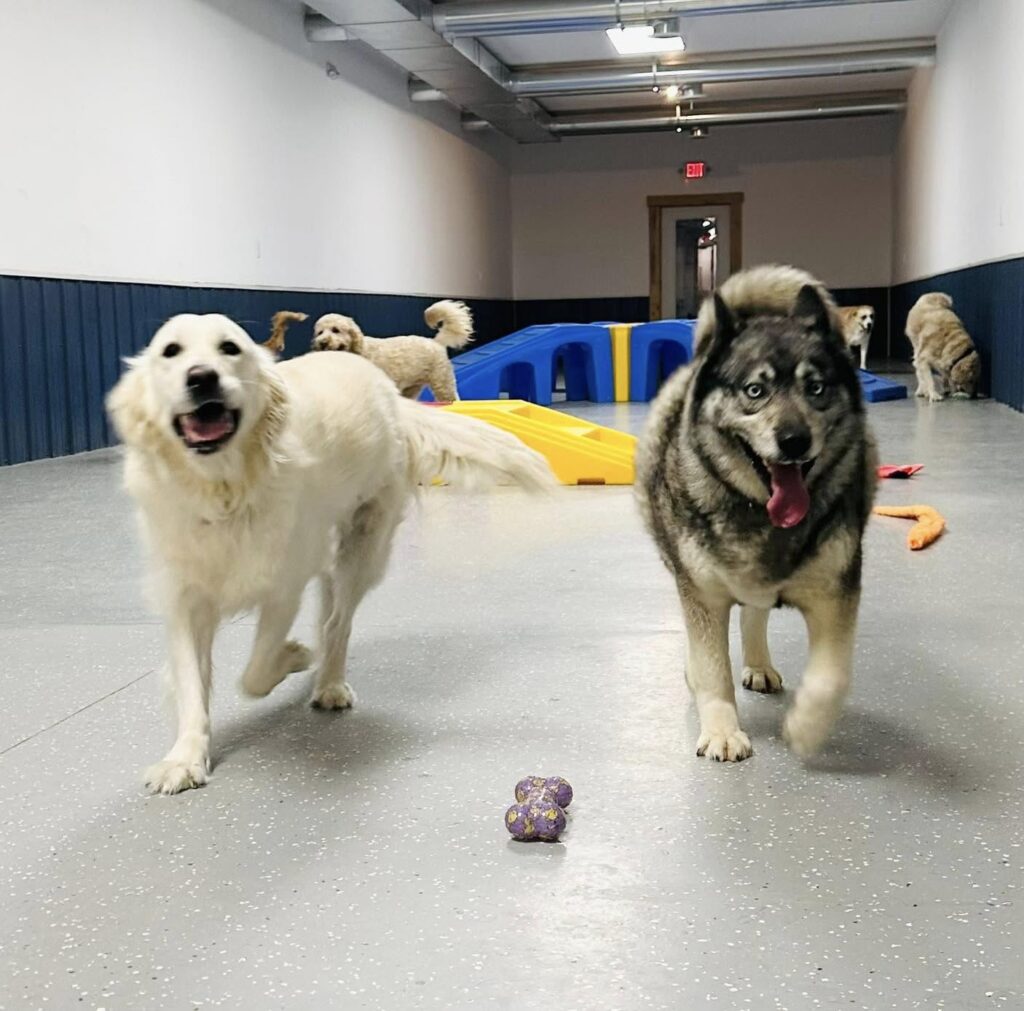 If we have dogs with social/friendly temperaments, they can play together. Each dog will be evaluated prior to play time to see if they will be a good candidate for group play. If your dog prefers to play by themselves, they’ll be let out individually during playtime.